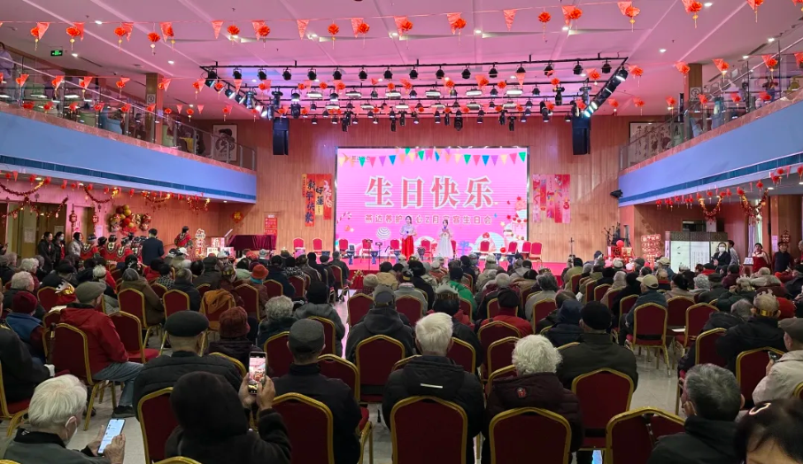 2月21日下午两点半,阳光透过云层,温柔地洒落在燕达养护中心园区内,数百位寿星长辈脸上洋溢着幸福与期待的笑容,他们或手挽手,或肩并肩,先后有序地步入金色年华大厅,共同欢庆生辰,尽情享受属于他们的欢乐盛会。