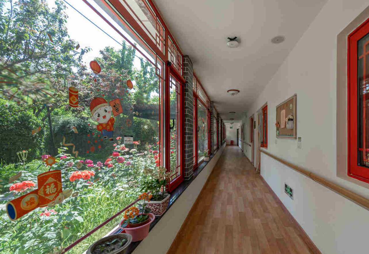 院内环境优美, 可以感受到颐寿轩为善果寺打造的“花园式”养老氛围, 院内共有30 多种绿植, 每一个季节景色都不一样,种植石榴、葡萄、海棠月季等等寓意美好。
